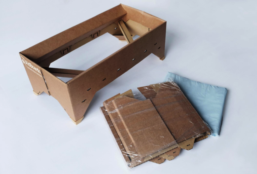 Aidboards hat die Entwicklung von Einweg-Feldbetten auf Basis von Papierwerkstoffen zum Ziel. Dazu wird ein tragendes, dauerhaftes Gestell aus Wellpappe mit einer wechselbaren Bespannung aus Papier versehen. Das Produkt wird als Bausatz für den einmaligen Transport als flaches Paket optimiert. Vor Ort wird der Aufbau werkzeuglos durch Steck- und Faltverbindungen erreicht, womit die Betroffenen umfangreich und aktiv in den Hilfsprozess einbezogen werden können.